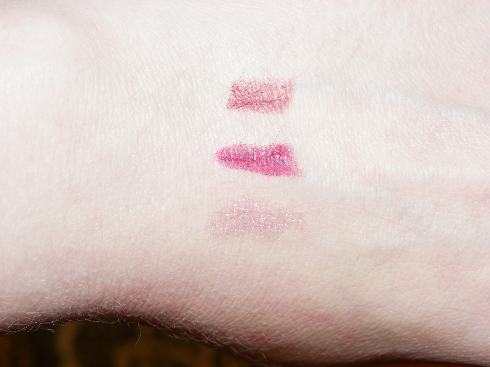 Armed with this list, I headed off to the drugstore. I had to go to three stores before I could find Certainly Red. I also bought Luminous Pink. The other colors scared me. They looked like they would be a little too pink, and Hot Coral looked very orange. I compared Love That Red to Certainly Red, and decided that Love That Red still had too much pink in it. I took my two lipsticks, and the two nail polishes, and went home. Here are the results.